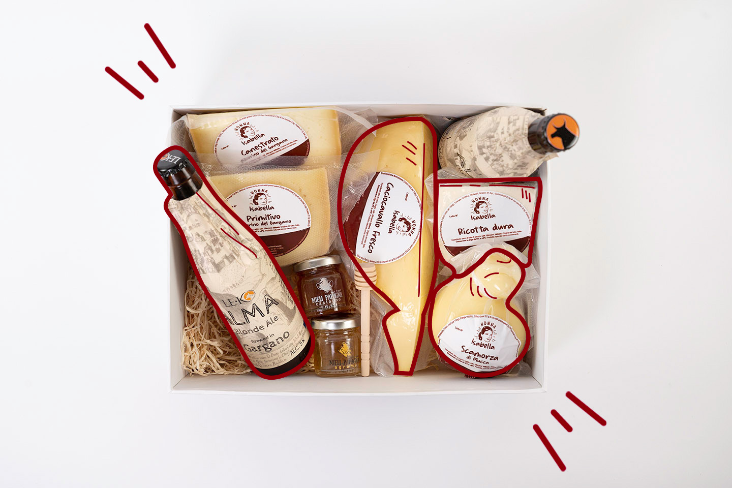 La tua box con i sapori de Gargano, tradizionalmente. Seleziona almeno 4 prodotti tra le nostre specialità e personalizza la tua box.
